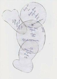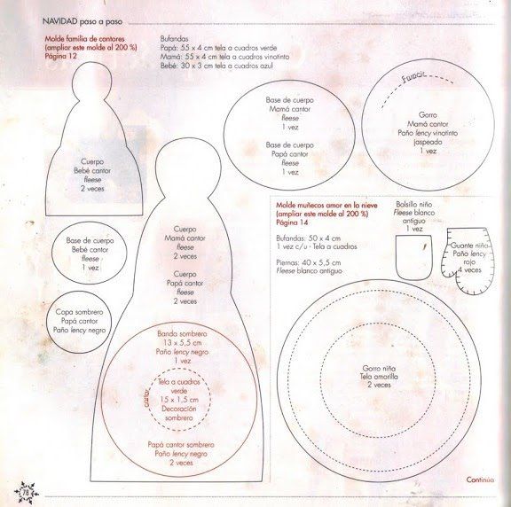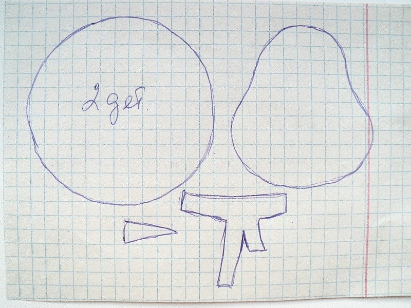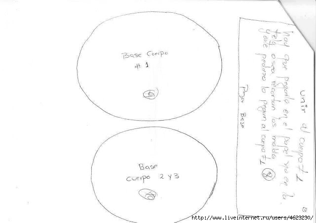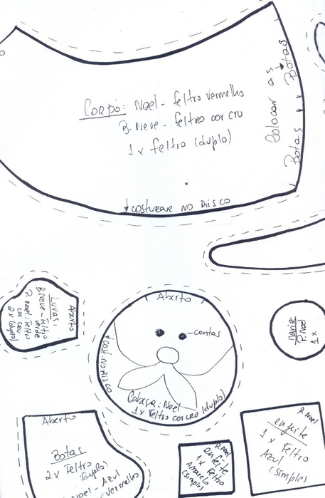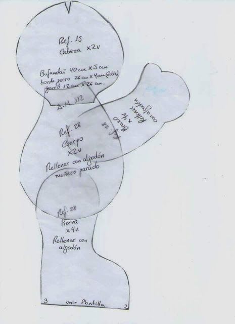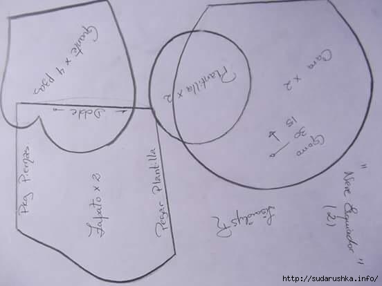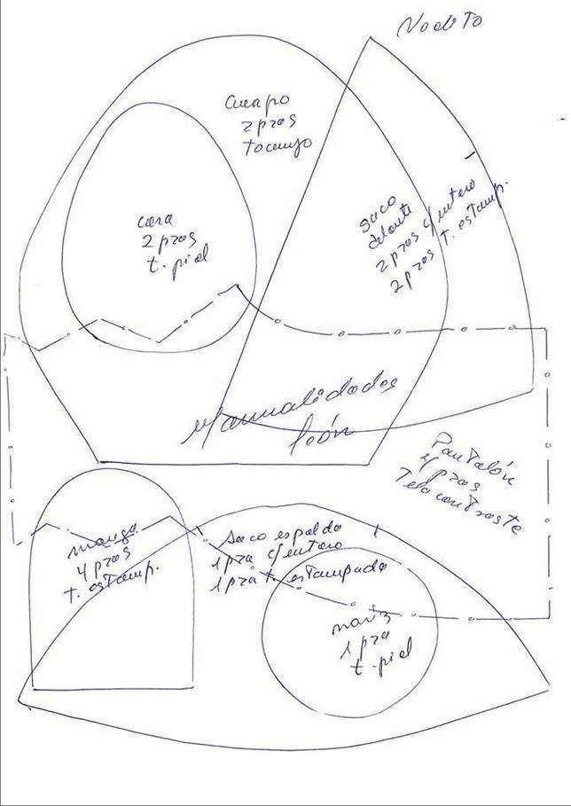 Выкройки используются очень простые – два круга для головы и туловища, один прямоугольник для шапки.