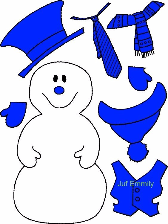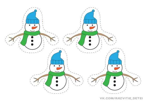 Продолжим изготовление снеговиков. Для малышей используем простые шаблоны.