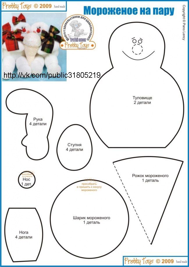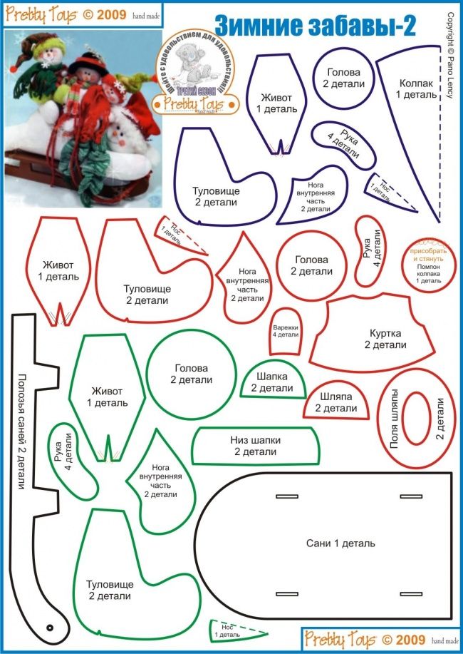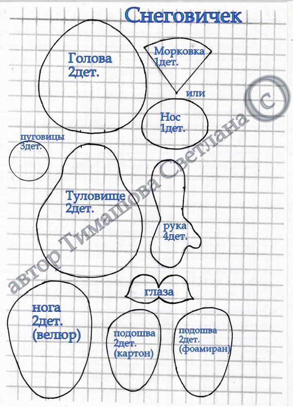 Чтобы сшить снеговика своими руками по готовым выкройкам нужно: