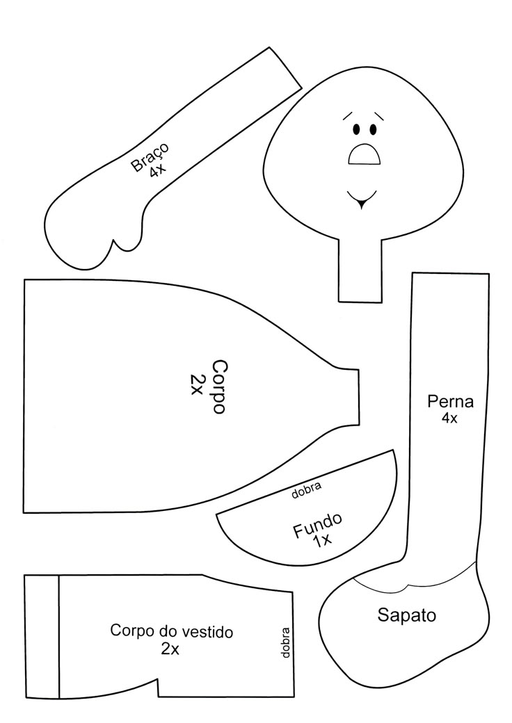 Все элементы по выкройкам для мальчика вырезаем из белого материала, кроме сапожек.