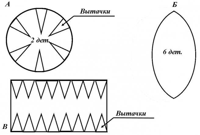Займёмся изготовлением шляпы для мальчика. Её шьют из трёх частей – тульи, дна и поля.