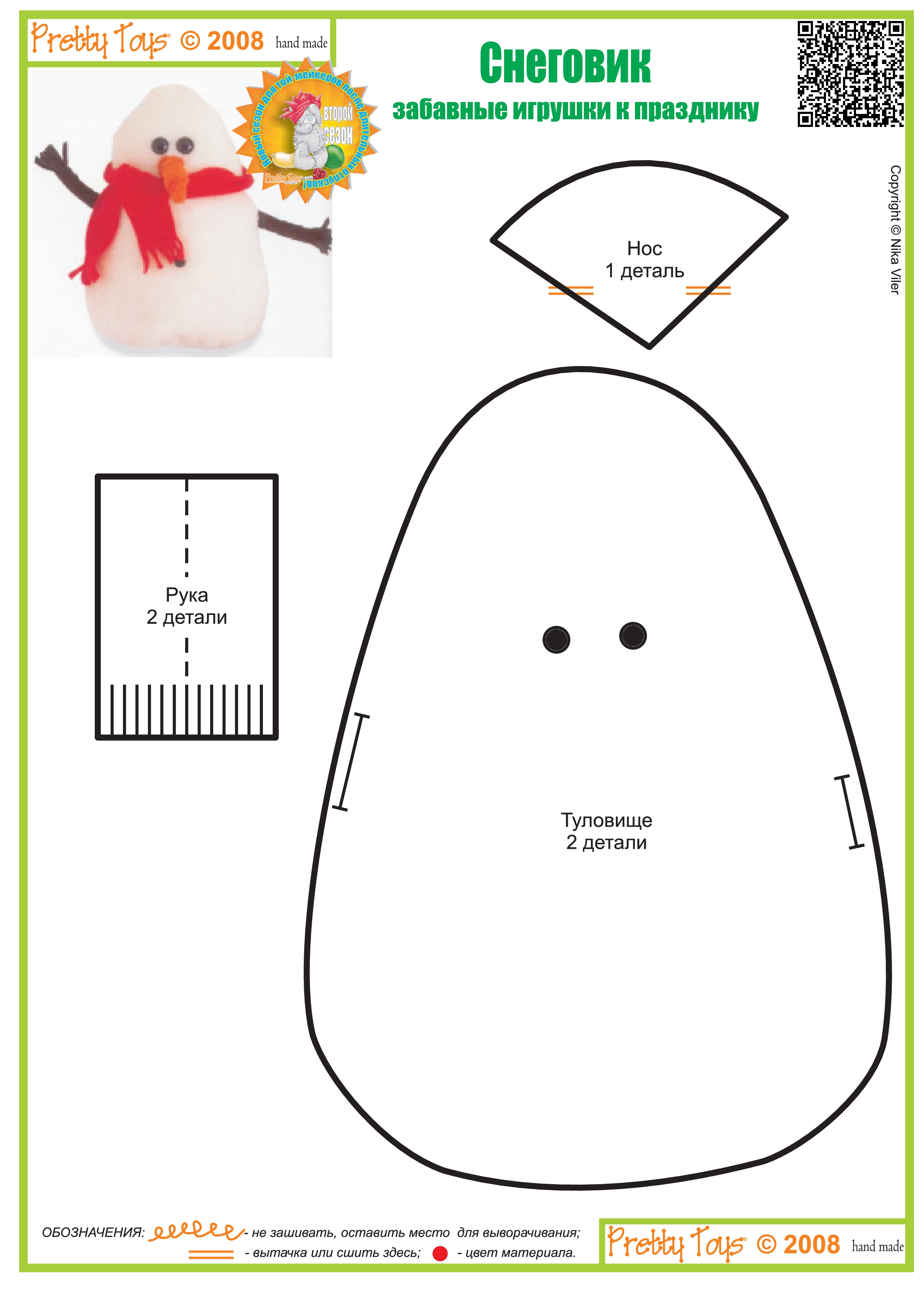 Электронная книга включает в себя 18 страниц и 96 фотографий. Выкройки снеговика и его шапок даются в натуральную величину. Вам останется только их распечатать, вырезать и приступить к шитью снеговика на Новый год.