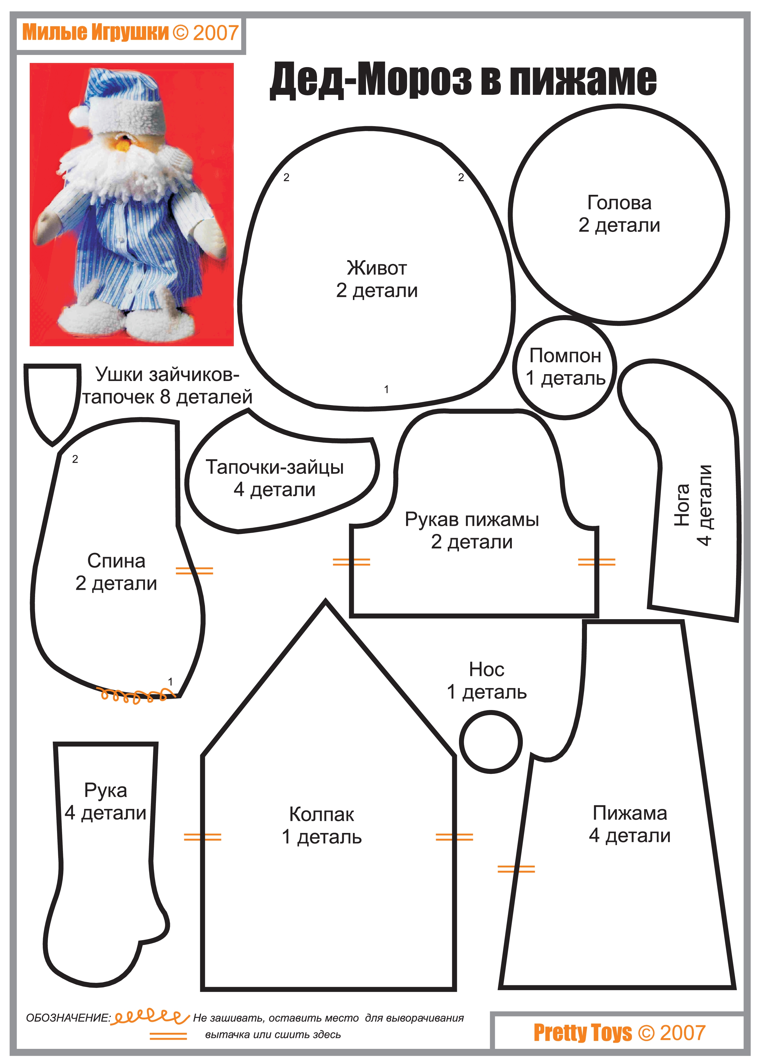 Для пошива туловища и головы используем предыдущие схемы. Собираем все детали.