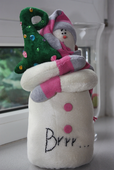 Есть еще одна очень функциональная идея снеговика из носка. Здесь она выполняет и декоративную и полезную функцию.