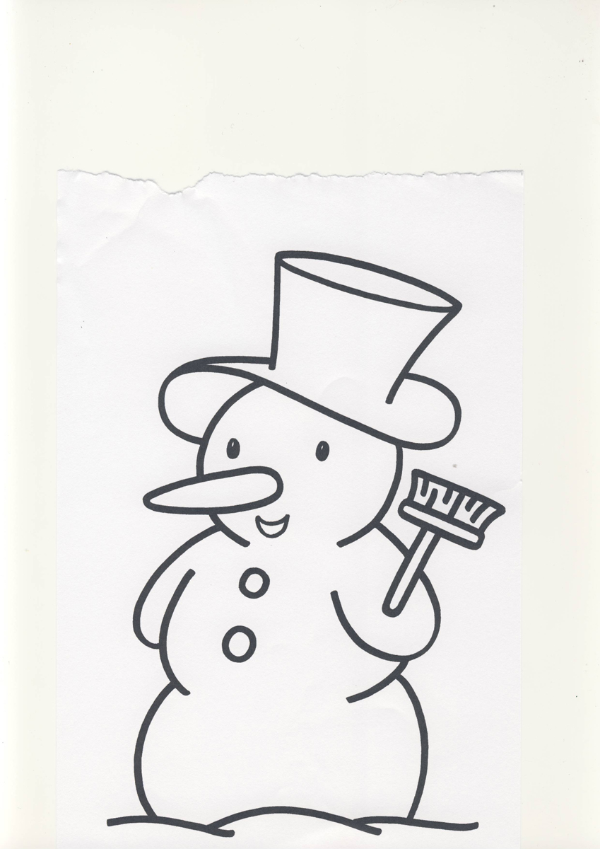 Понадобится только белая бумага, фломастеры и цветная бумага, чтобы сделать мелкие детали или же можно заменить их клейкой бумагой, на которой вырезают глазки, нос и ведро.