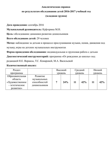 Аналитическая справка по результатам мониторинга воспитанников младшей подгруппы МБДОУ детский сад «Петушок» Белгородской области Ивнянского района с.хомутцы освоения программы «От рождениядо школы» под