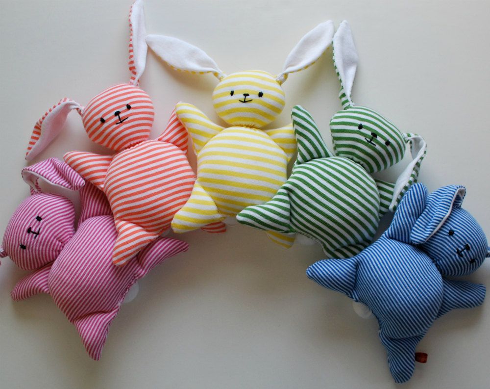Подбери яркие лоскуты ткани и контрастные нитки. Все детали сшивай с внешней стороны петельным швом. Особенно надежно прикрепи к туловищу глазки и носик из бусинок, чтобы малыш не смог их случайно оторвать.