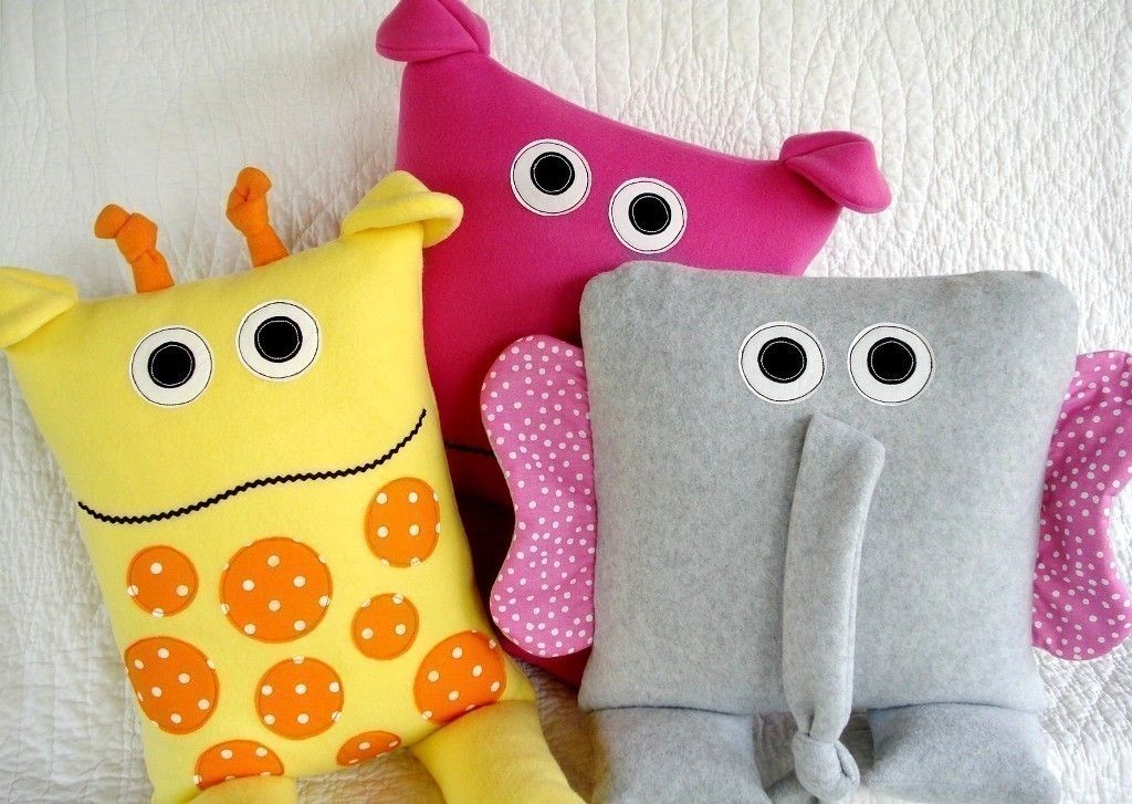 Изготовление подобной игрушки-подушки не займет много времени – правильно перерисуй выкройку, сшей детали и набей мягкой «начинкой». Далее сформируй мордочку с большими любопытными глазенками.