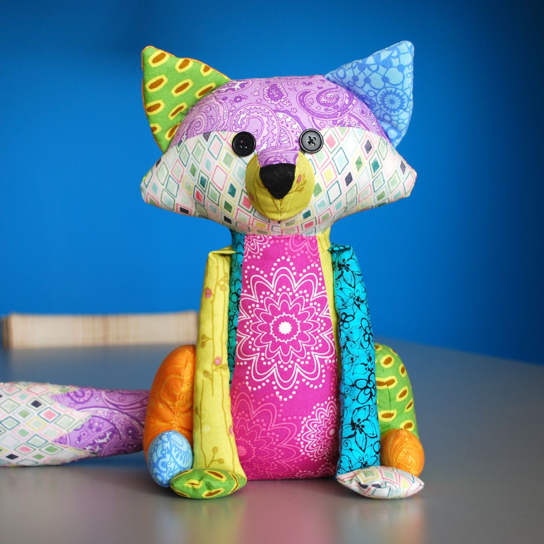 Используй выкройки и разноцветную ткань. Детали мордочки можно просто вышить или нарисовать маркером.
