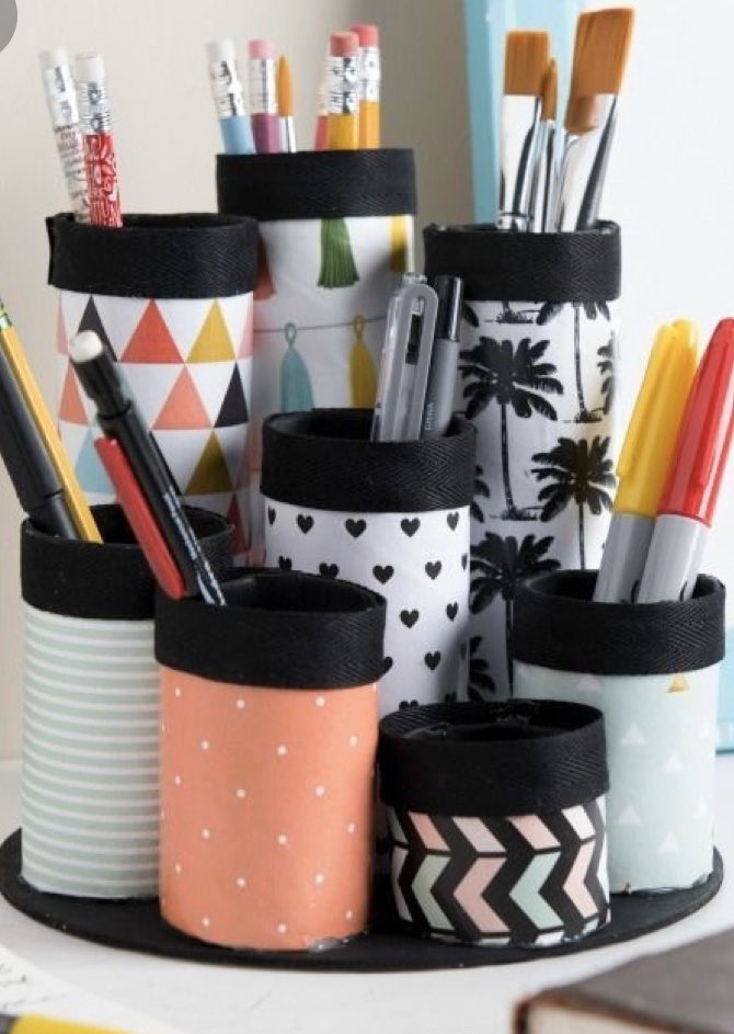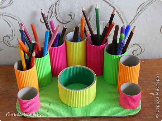 Сделайте и Вы такие стаканчики для карандашей из картонных трубок – Вашим деткам очень понравится процесс изготовления и размещения карандашей, а сам органайзер пригодится для учёбы.