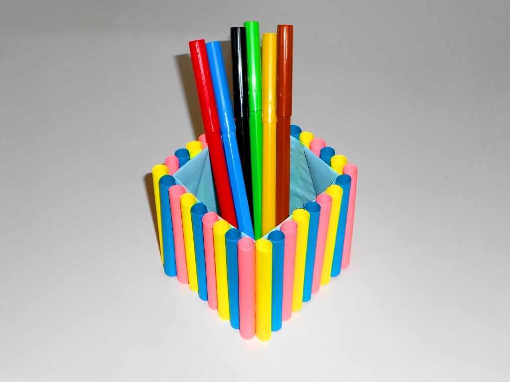 Перед тем как сделать стакан из бумаги для ручек, кисточек и всего прочего, советуем рассмотреть 2 наиболее простых, но таких интересных варианта: