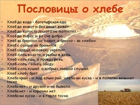 Цель: Закрепить знание детей о хлебе, как одном величайших богатств на земле.