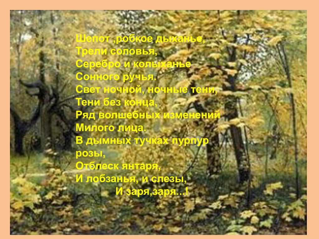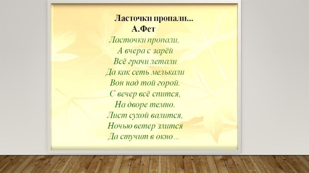 Для А. А. Фета осень — время угасания. Поэт описывает медленное умирание природы. Когда А.С. Пушкин описывает осеннюю природу, мы слышим радостные нотки. Когда А. А. Фет говорит об этом же времени, у нас возникает тоска.