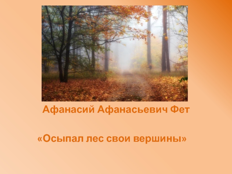 Творчество А. Фета в основном связано с чувством восторга перед природой. Резким отличием является стихотворение «Осень», написанное в 1883 г. Поэт в это время был уже в преклонном возрасте, поэтому воспринимал жизнь как медленное угасание.