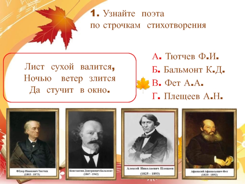 Осень привлекала многих поэтов своей неоднозначностью. Есть , Лермонтова, Пушкина, Бальмонта.