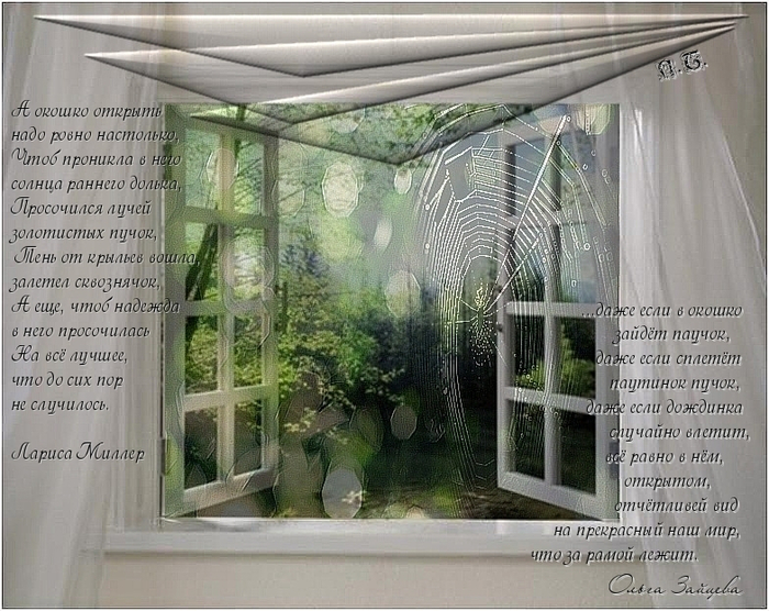 –Выберите стих–Я люблю под окнами мечтать…Влезть на подоконник…День за днем идет кино…На стекле запотевшем, оконном…В окно постучала полночь…В наши окна, щурясь…Высоко мое оконце…Во Сне открылося Окно…Филин старый, филин умный…А из нашего окна…