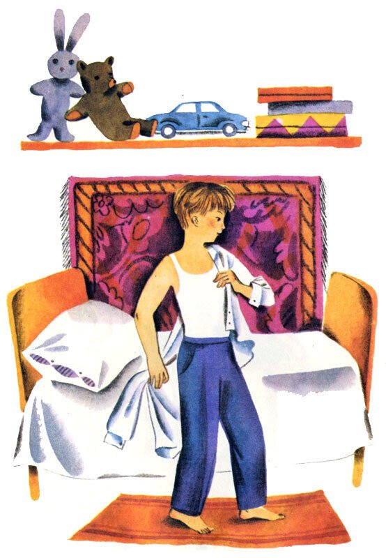 Поэзия А. Барто сопровождает ребенка с самого раннего возраста, забавляя и поучая его. Даже переступая порог школы, он не расстается с творчеством поэтессы. Лексика разговорная, близкая к детской речи («ужасно испугался»). С улыбкой автор описывает волнение Пети (кстати, имена – одна из важнейших черт поэзии А. Барто, возможность придать достоверность, узнаваемость ситуации). Незнакомая дотоле ответственность снедает первоклассника: «оделся в две минуты». Пожалуй, пройдет немного времени, и он не будет столь охотно вставать по утрам в школу. Глубокой ночью, с пеналом в портфеле (еще бы, ведь он такой красивый), Петя выскакивает в прихожую. Ему не нужны сопровождающие, и даже традиционный букет цветов. Хорошо, что у папы бессонница – он услышал шорох. Даже соседи невольно оказались причастны к завтрашнему событию. Тоже не спят, хотя в школу и не собираются. Рефрены, перечислительные градации подчеркивают ночной переполох. В эту ночь выспались только бабушка с дедушкой, однако и у них были тематические сны: ответы у доски.