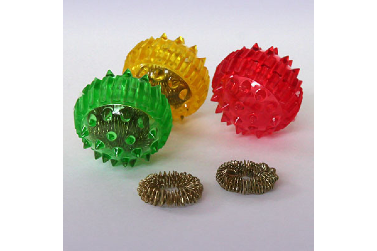 “Шар массажный с шипами” – колючие шарики. Используются для лечения по основной системе соответствия. Массирование определенных участков ладони способствует лечению внутренних органов. Можно просто перекатывать шарик в руках, нормализуя работу организма в целом.