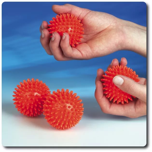 На ладони находится множество биологически активных точек, поэтому эффективным способом их стимуляции является массаж специальным шариком с шипами. Прокатывая шарик между ладошками, дети массируют мышцы рук. Примеры упражнений: