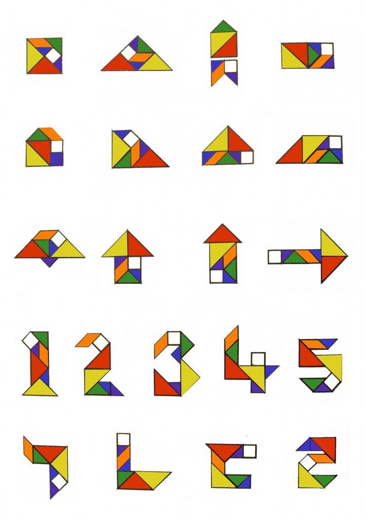 Диаграммы могут быть изображениями предметов, пейзажей, животных или даже человеческих фигур в различных положениях.Задача головоломки – разместить все семь частей на плоской поверхности (без наложения частей) так, чтобы они имели ту же форму, что и одна из диаграмм.