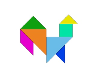 Задача головоломки Tangram состоит в том, чтобы переставить семь отдельных частей в законченное изображение различной формы (только в контуре или силуэте).