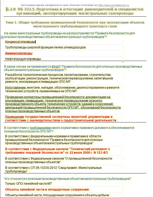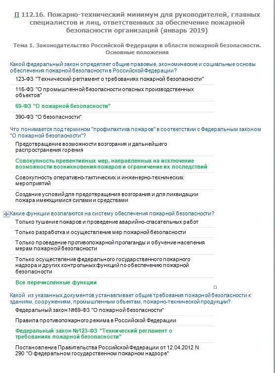 Правильные ответы на вопросы по пожарной безопасности (для проверки знаний ИТР) выделены курсивом + синим цветом