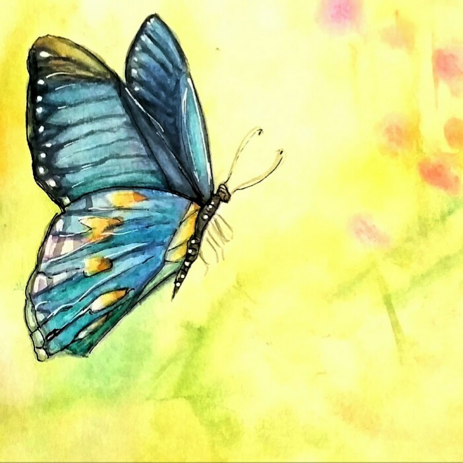 Нарисуем акварелью эскиз бабочки, сидящей на цветочке.