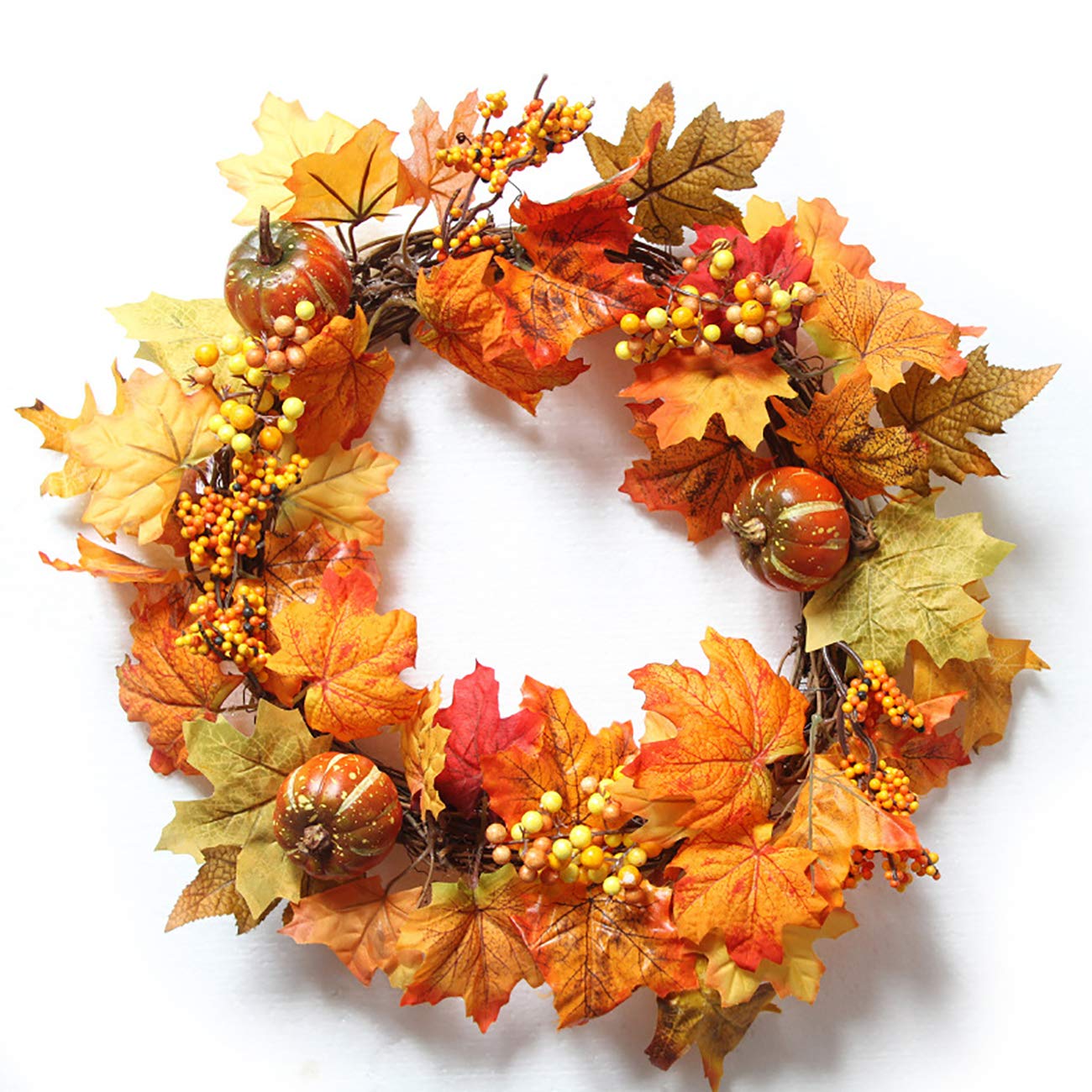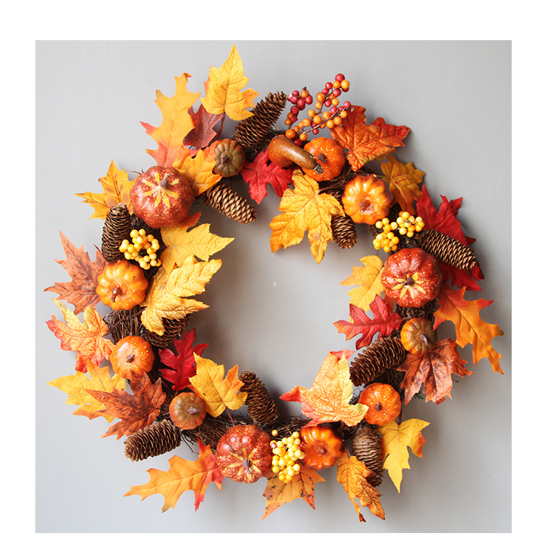 Для декорирования осеннего венка на дверь можно использовать спелые тыквы, но их главный недостаток — недолговечность. Гораздо удобнее использовать искусственные тыквы, которые более легкие и не портятся.