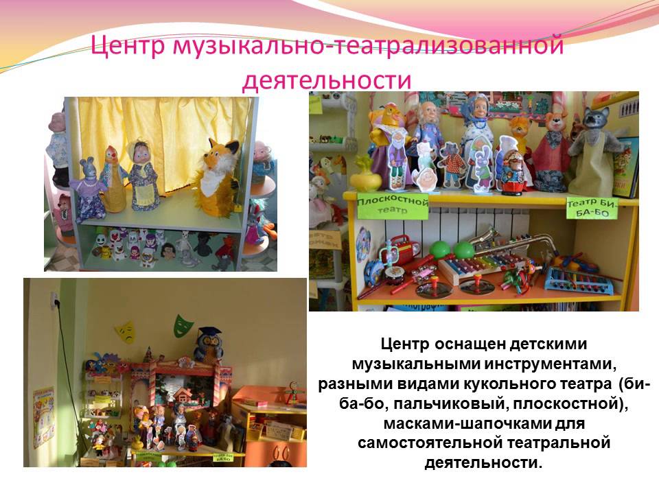 В соответствии с этим практическое действие каждого ребенка является важнейшим методическим принципом проведения данных занятий. Индивидуальная работа Ещё одной из форм организации театрализованной деятельности является парная работа воспитателя с ребёнком – один на один. Такое обучение часто называют индивидуальным. В процессе индивидуальной работы происходит тесный контакт между педагогом и малышом. Это даёт воспитателю глубже изучить чувства ребёнка, понять, на что направлены его переживания, на сколько они глубоки и серьёзны; помогает воспитателю выявить пробелы в знаниях, ликвидировать их с помощью систематической работы. Также индивидуальная работа помогает подготовить ребёнка и к предстоящей деятельности (занятию, игре – драматизации, работе в спектакле) Самостоятельная деятельность детей – театрализованные игры. Театрализованные игры пользуются у детей неизменной любовью. Большое разностороннее влияние театрализованных игр на личность ребенка позволяет использовать их как сильное, но не навязчивое педагогическое средство, ведь малыш во время игры чувствует себя расковано, свободно, естественно. Таким образом, в процессе игры у детей формируются навыки самостоятельных действий, которые заключаются в том, чтобы уметь без посторонней помощи продумать замысел, находить изобразительно-выразительные средства для его воплощения, последовательно осуществлять задуманное, контролировать свои действия в различных видах театрализованной деятельности, уметь действовать в различных ситуациях. Выдающийся режиссер и актер К. С. Станиславский в своей книге «Работа актера над собой», характеризуя детскую игру, говорит, что игра ребенка отличается верой в подлинность и правду вымысла. Стоит ребенку сказать себе «… как будто бы» и вымысел живет уже в нем. Чтобы интерес к самостоятельной театрализованной деятельности у детей не угас, необходимо подкрепить его новшеством, что послужило бы мотивом развития дальнейшей деятельности. Таким новшеством служит предметно-пространственная среда, которая является одним из основных средств развития личности ребенка, источником его индивидуальных знаний и социального опыта, развития творческих способностей… Эта среда не только обеспечивает театрализованную деятельность, но и является основой самостоятельного творчества каждого ребенка, своеобразной формой самообразования. Поэтому при проектировании предметно-пространственной среды, следует учитывать особенности эмоционально-личностного развития ребенка, его интересы, склонности, любознательность, творческие способности, предпочтения и потребности, а также не следует забывать об индивидуальных социально-психологических особенностях ребенка, т. При этом для обеспечения оптимального баланса совместной и самостоятельной театрализованной деятельности детей (театрализованные игры) в каждой возрастной группе должна быть оборудована театрализованная зона или уголок сказки, а также тихий уголок, где ребенок может побыть один и прорепетировать какую-либо роль перед зеркалом или еще посмотреть иллюстрации к спектаклю и др. Таким образом, в самостоятельной театрализованной деятельности детей ребенок не только получает информацию об окружающем мире, законах общества, о красоте человеческих отношений, но и у