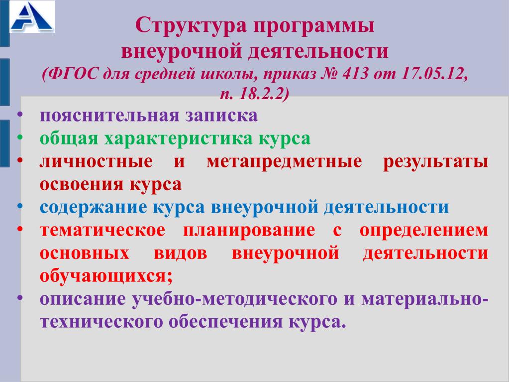 Внеурочная деятельность в соответствии с ФГОС включена в основную образовательную программу, а именно в часть, которую формируют участники образовательного процесса.