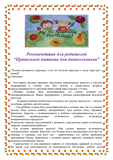 Консультация для родителей на тему «питание ребенка дома и в детском саду»