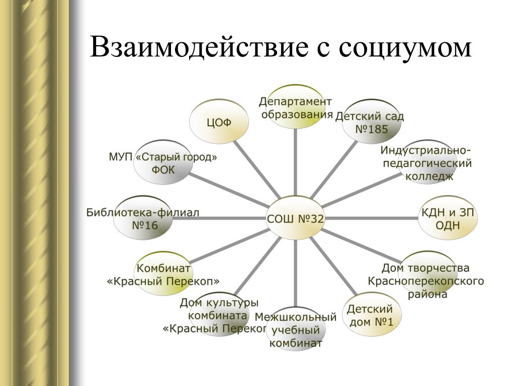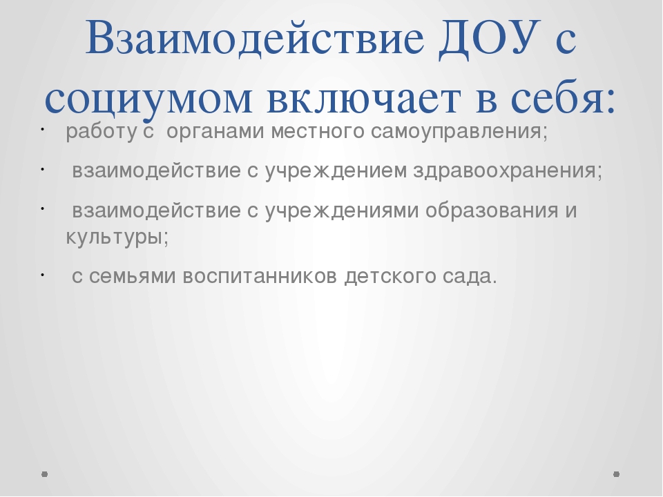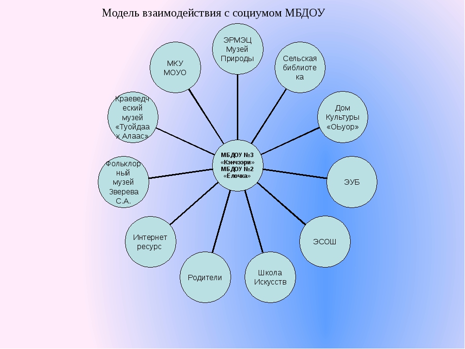 Предметом взаимодействия и сотрудничества является ребенок, его интересы, заботы о том, чтобы каждое педагогическое воздействие, оказанное на него, было грамотным, профессиональным и безопасным. Внешние связи и взаимоотношения в нашем детском саду строятся с учетом интересов детей, родителей и педагогов.