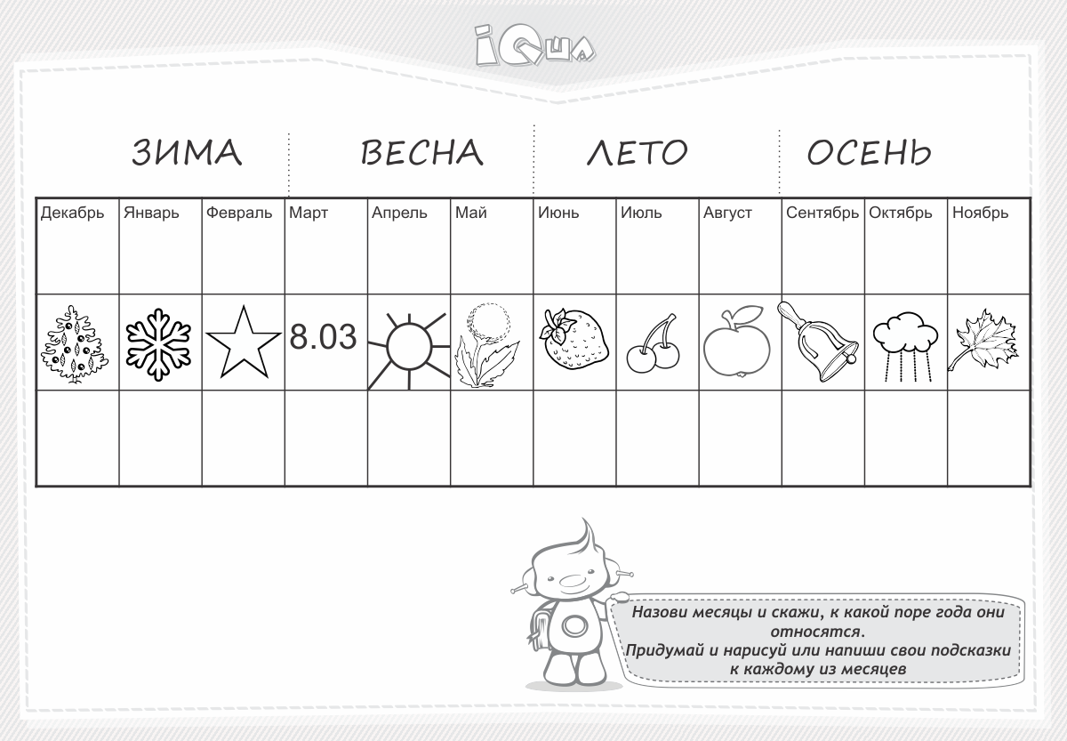 Задания на тему учим месяцы и времена года предполагают игровую форму обучения. Благодаря этому, их выполнение не будет утомительным и скучным для ребенка. Упражнения учим времена года, очень помогут подготовить ребенка к школе и заложить основу его будущего интеллектуального развития. Получить такие задания можно совершенно бесплатно с помощью сайта Childdevelop.