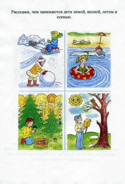 Поднимите разные картинки и попросите учащихся рассказать, что происходит и какая погода, а затем спросите: Какое сейчас время года?