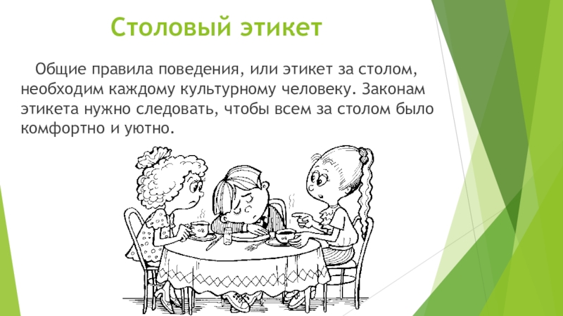 не следует, сев за стол, пристально рассматривать столовые приборы, а потом их вытереть салфеткой, заметив что-то