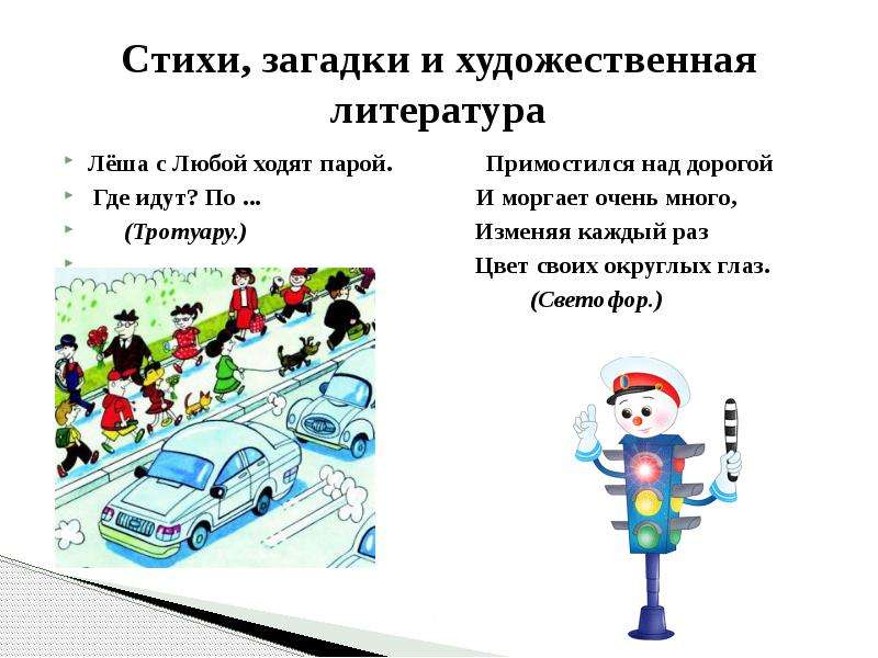 На странице собрано большое количество загадок по ПДД. Отгадывая их, дети закрепят знания о безопасности на дорогах, а, возможно, узнают что-то новое.