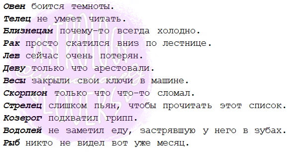 Рыбы – это мечтатели всего гороскопа. Они от плохого уходят в хорошее, их раздражает когда им говорят, что в их представлении всего в хорошем свете может быть что-то плохое. Рыбам плохо, когда им до слез жалко кого-то, а это бывает не от хорошей жизни, поэтому когда все хорошо и главное у всех вокруг все хорошо, Рыбам тоже хорошо! Рыбы чувствительны, поэтому им бывает искренне хорошо, когда им хорошо и также искренне плохо, когда плохо. Все логично, никаких неожиданностей.