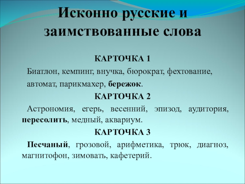 – Определите исконно русские слова, зная, что заимствованные слова, как правило,