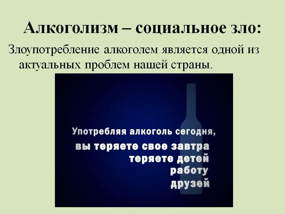 Алкоголь является наркотическим ядом, и действует, прежде всего, на клетки головного мозга, парализуя их. Алкоголь – яд для любой живой клетки. Доза в 7-8 г чистого спирта на 1 кг веса тела является смертельным для человека. По данным Всемирной организации здравоохранения (ВОЗ), алкоголизм ежегодно уносит около 6 млн. человеческих жизней. По официальным данным только в Москве до 30% больных поступают в больницы с тяжелыми травмами, находясь в состоянии опьянения. Похититель разума – так именуют алкоголь с давних времен.