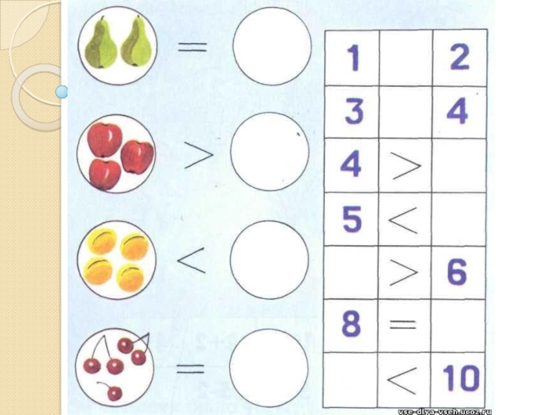 3. закреплять умение правильно применять знаки >, <, =; 4.закреплять знания о геометрических фигурах, о последовательности дней недели, пространственные представления; совершенствовать навык ориентировки на листе бумаги в клетку.