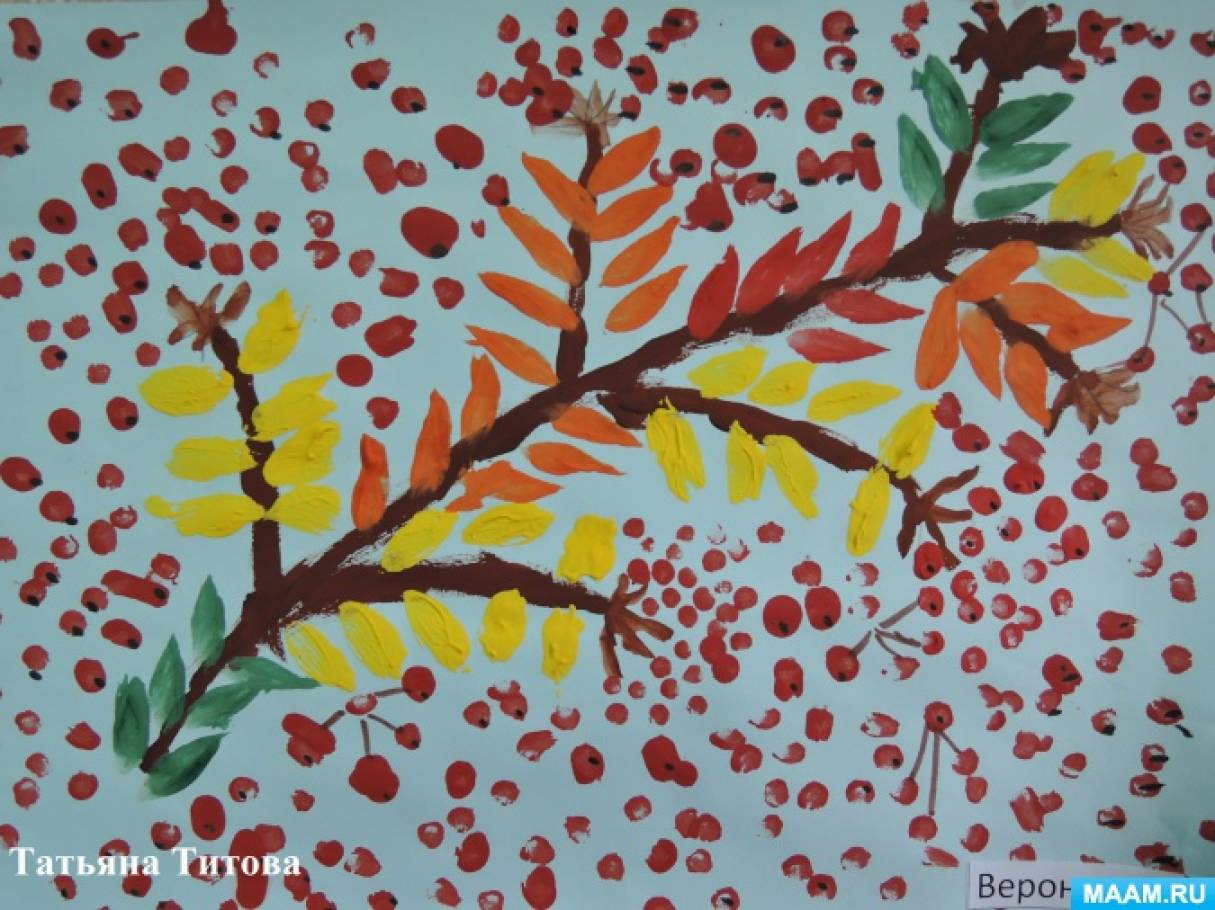 Посмотрите как удобно изображать палочкой осенние листочки и капельки дождя.