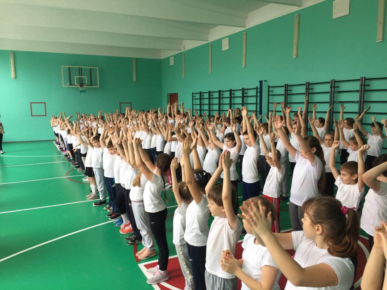 Комплекс упражнений для детей начальных, а затем старших классов, по очереди продемонстрировали представители фитнесс-клубов Оксаны Вербиной и Оксаны Дьячук. Дети повторяли за спортсменами простые упражнения, которые направлены на тренировку отдельной группы мышц.