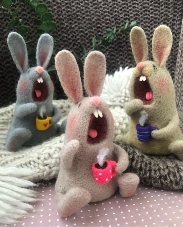Вооружившись необходимыми материалами и инструментами, можете спокойно приступать к валянию. Так как заяц объемный, нужно сначала из шерсти сделать заготовку и потом набить её синтепоном. Как же сделать объемную шерстяную фигурку? — Оказывается, все очень просто!