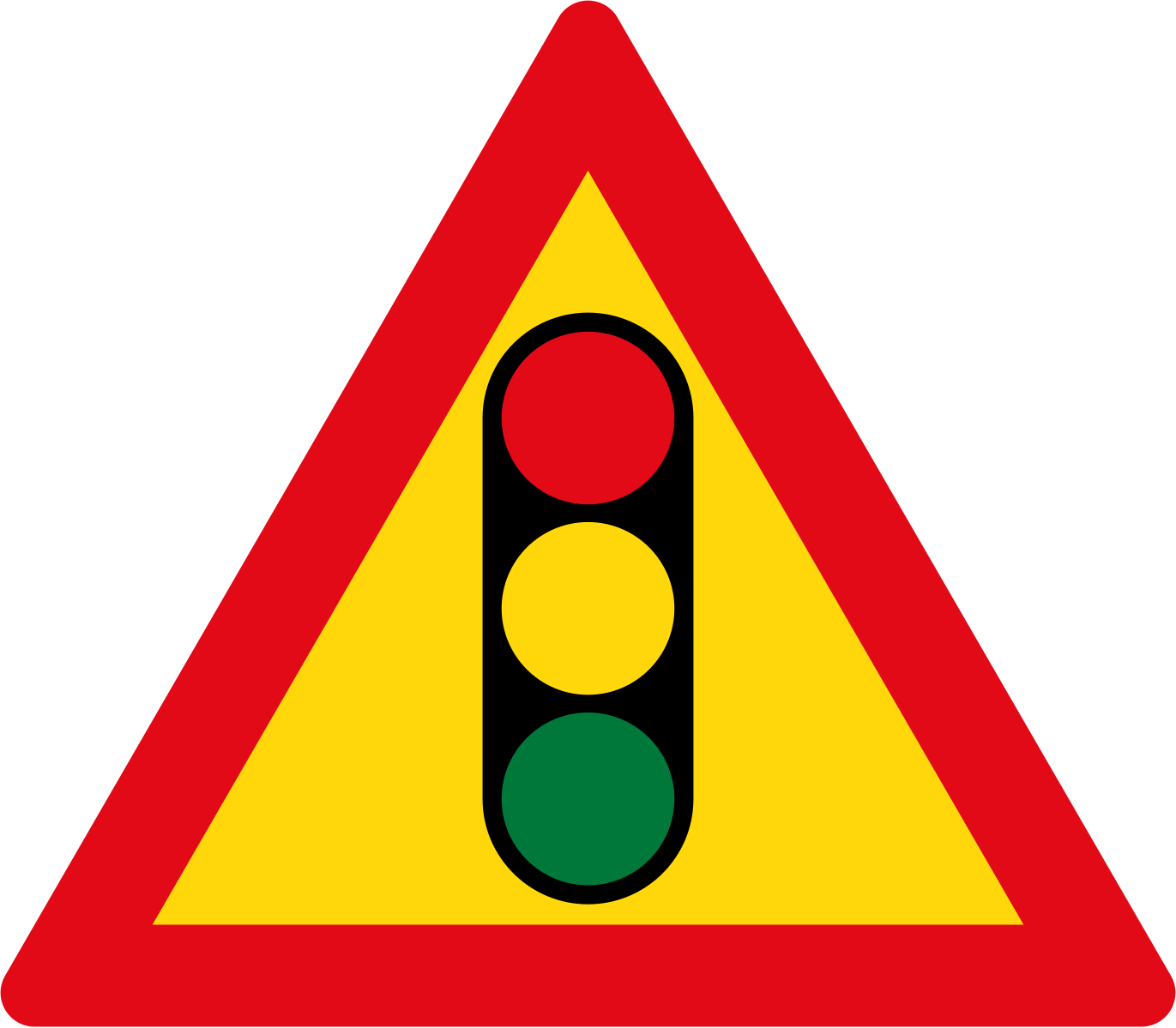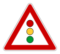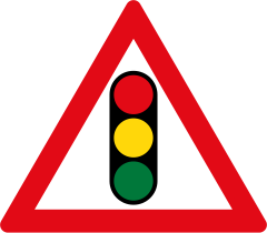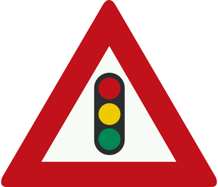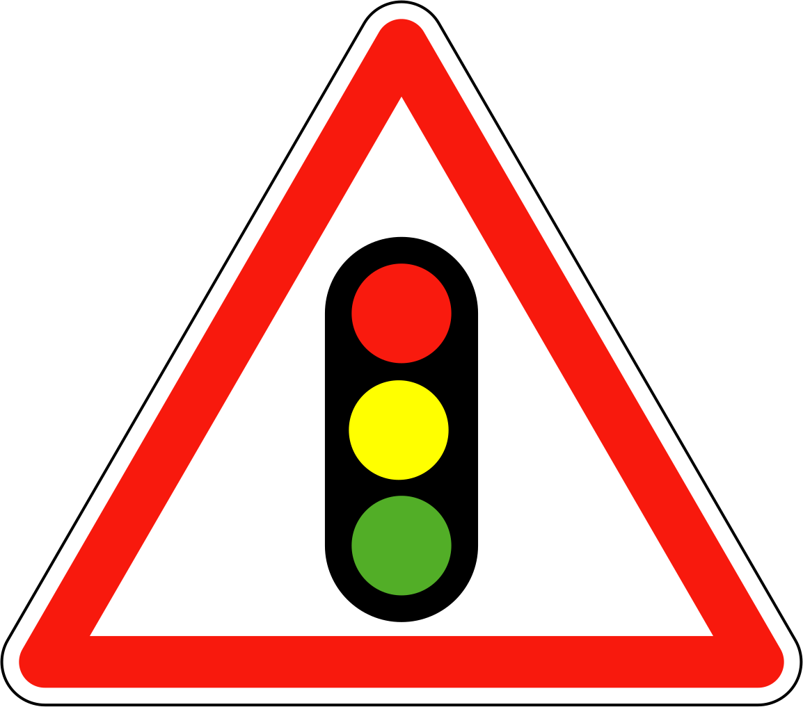 Дорожный знак «Светофорное регулирование» (светофор в треугольнике) относится к категории предупреждающих знаков и содержится в ПДД РФ под номером 1.8. Как и другие предупреждающие знаки, он представляет собой треугольник на белом фоне с красной окантовкой и изображением светофора по центру.