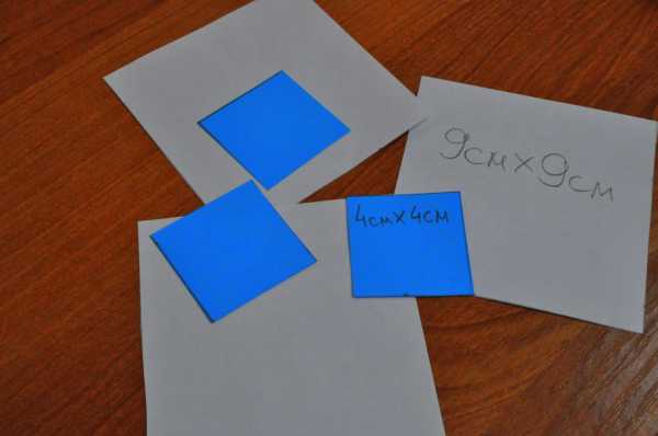 8. Далее начинаем изготовление цветка. Нам необходимо взять 3 квадрата 9см. на 9см., и 4 см. на 4 см.