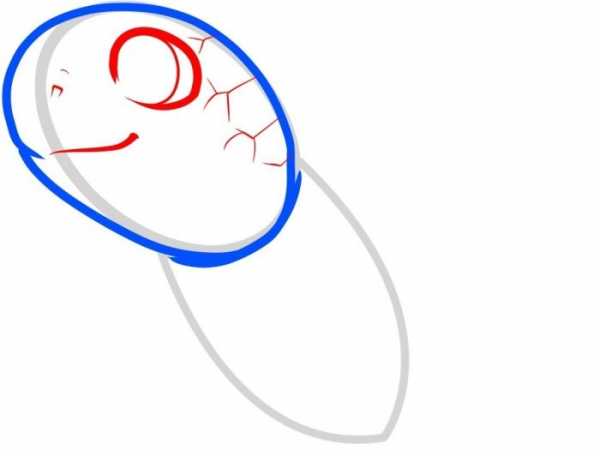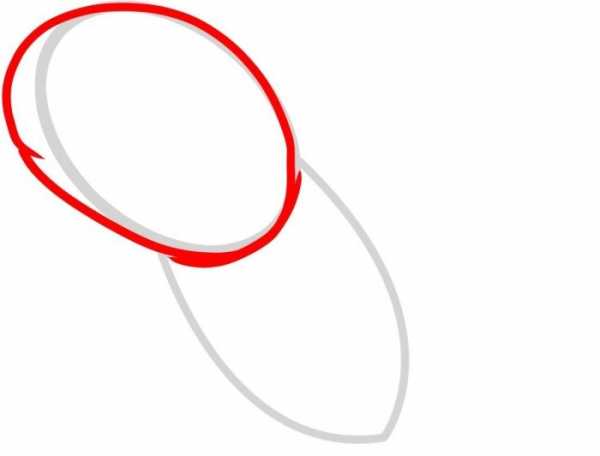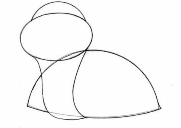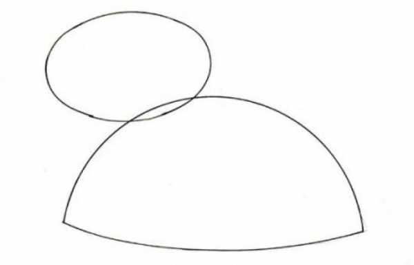 Нарисуй вот такие два овала — голову и тело черепахи.