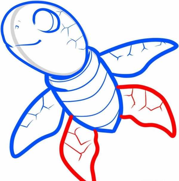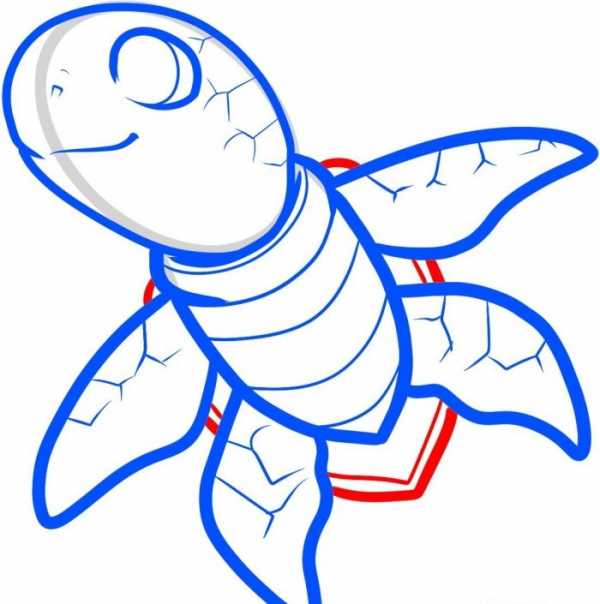 Теперь осталось нарисовать глаз и хвостик черепахи.