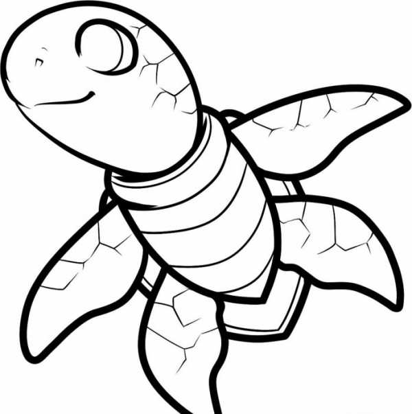 Напоследок я еще приготовил для Тебя вот такой несложный рисунок черепахи. Уверен, что Тебе легко удастся нарисовать такую зверюшку даже без объяснений.