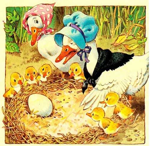– Да вот с одним яйцом никак не управлюсь, – сказала молодая утка. – Все не лопается. Зато посмотри-ка на малюток! Просто прелесть! Все, как один, – в отца.