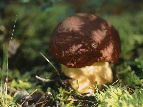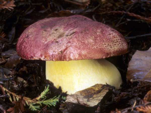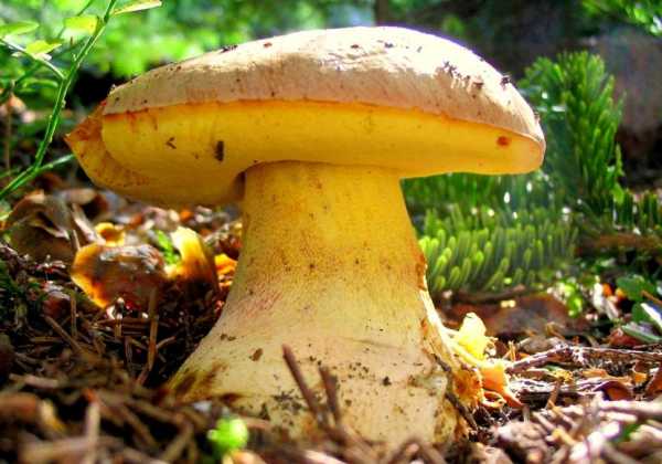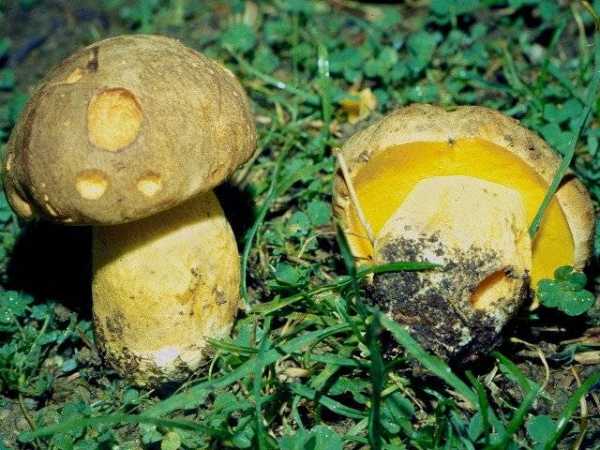 Этот болет также относится к категории съедобных и отправляться на его поиски необходимо с июля по октябрь в Западную Европу. Найти желтые боровики не составит труда под дубами и буками. Такая же выпуклая в молодом возрасте и плоская в зрелом, шляпка гриба имеет средние размеры от 4 до 16 см. Желтая с коричневым оттенком, она сухая и матовая в сухую погоду, и слизистая, когда на улице сыро и дождливо. Ножка болета достаточно толстая (до 4-7 см в толщину) и достигает 12 см в высоту, желтая, без сеточки на ней, но, иногда, усеяна мелкими чешуйками. Лимонная мякоть на срезе быстро приобретает синий оттенок.